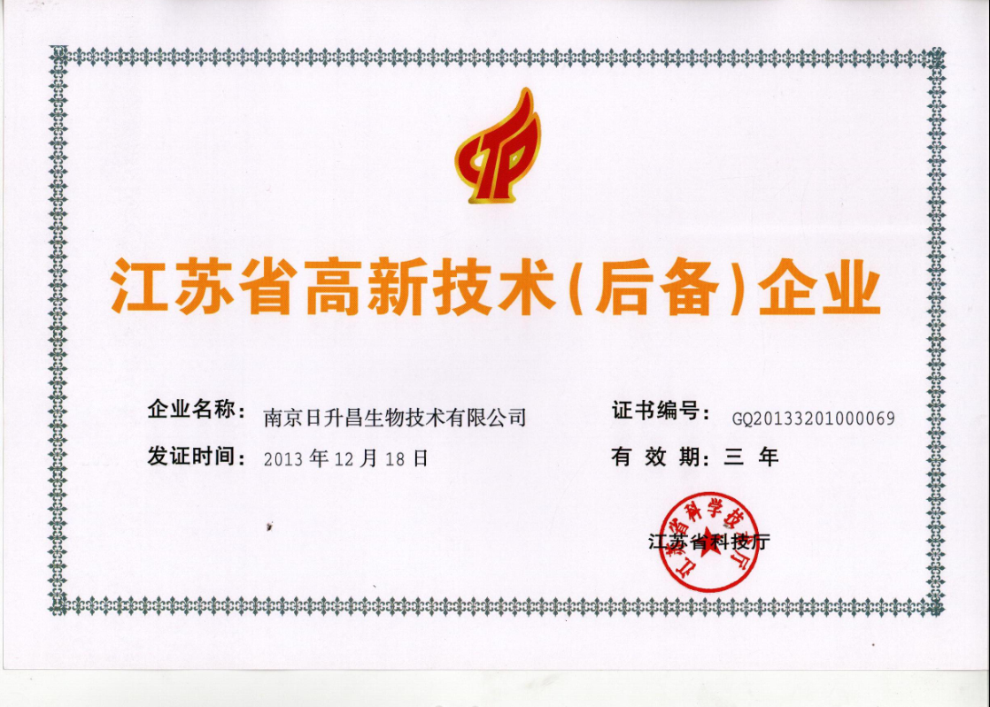 热烈祝贺日升昌获得江苏省高新技术企业称号