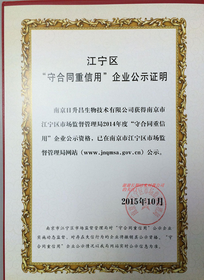 日升昌获“守合同重信用企业”称号