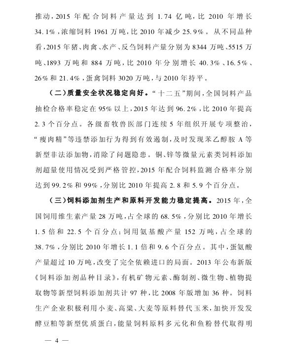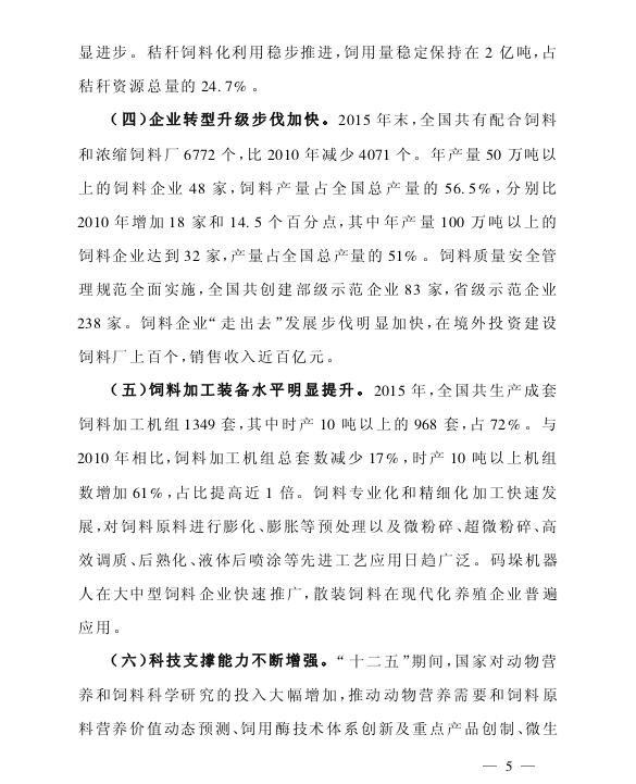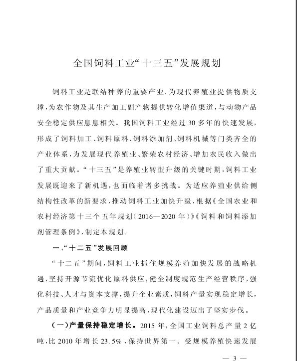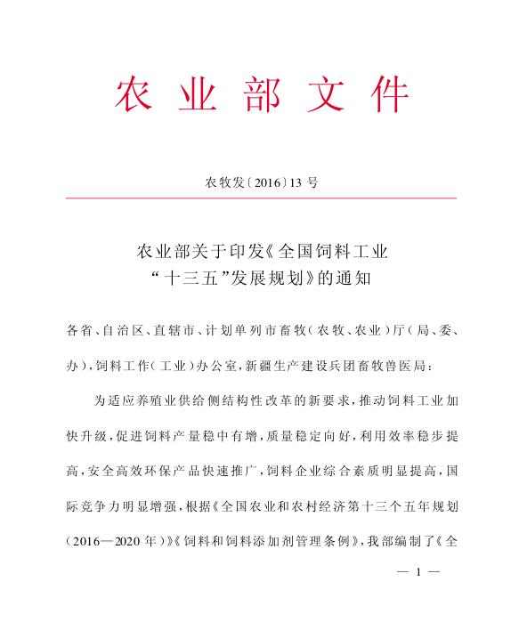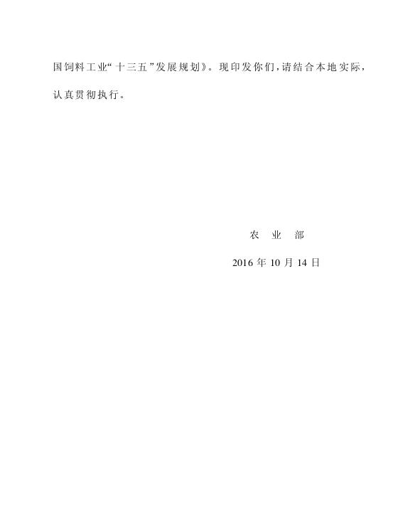 农业部关于印发《全国饲料工业“十三五”发展规划》的通知