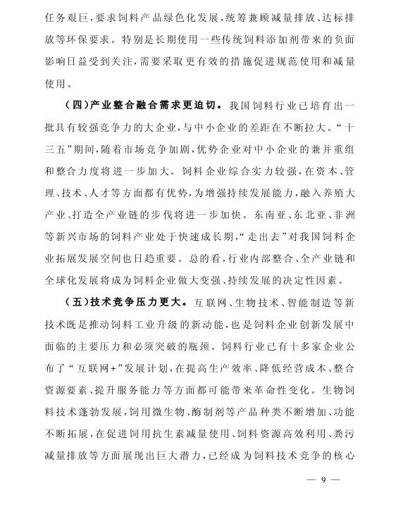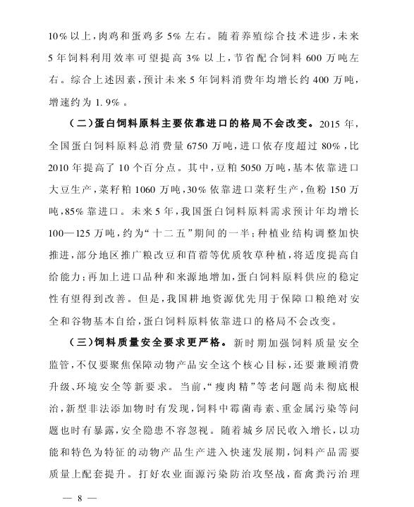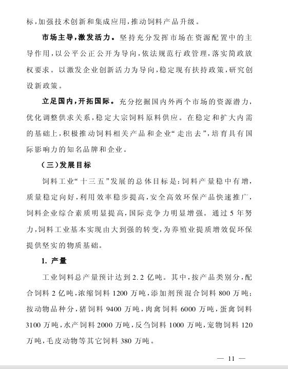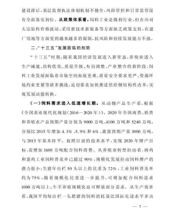 为适应养殖业供给侧结构性改革的新要求,推动饲料工业加快升级,促进饲料产量稳中有增,质量稳定向好,利用效率稳步提高,安全高效环保产品快速推广,饲料企业综合素质明显提高,国际竞争力明显增强,根据《全国农业和农村经济第十三个五年规划(2016—2020年)》《饲料和饲料添加剂管理条例》,我部编制了《全国饲料工业“十三五”发展规划》。现印发你们,请结合本地实际,认真贯彻执行。