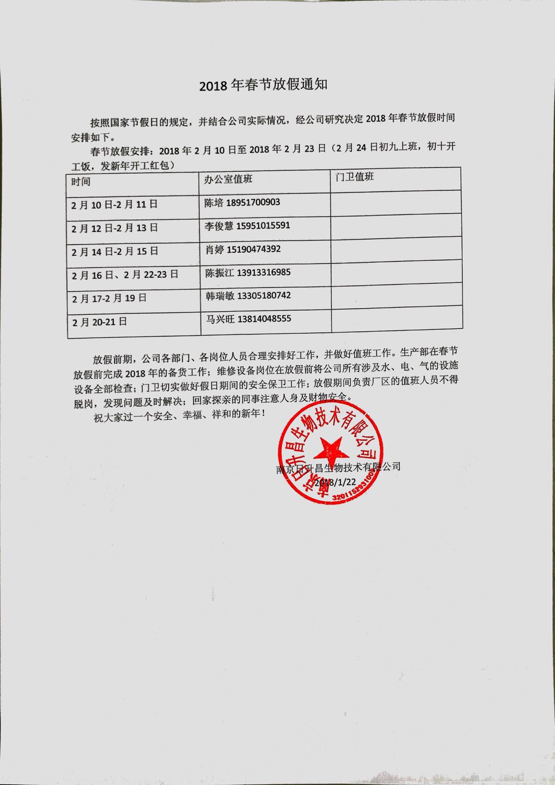 2018年春节放假通知
