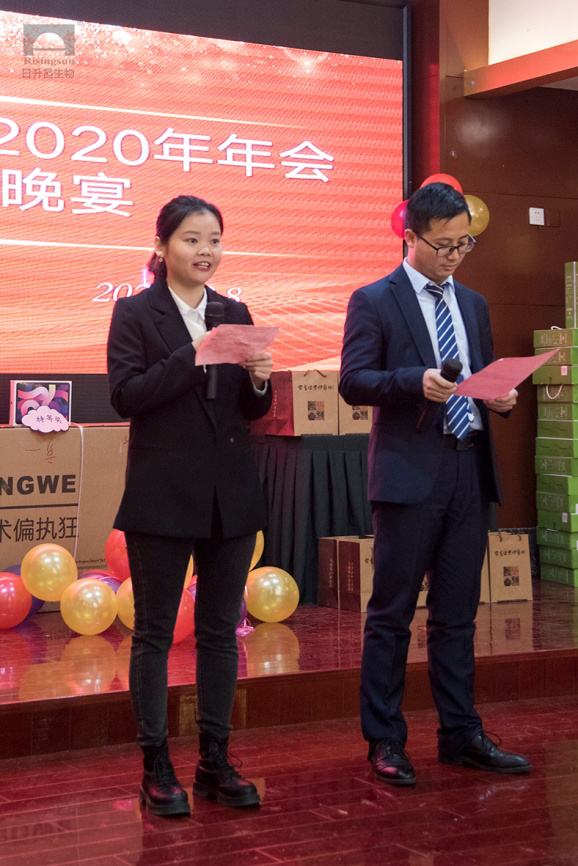 夜幕降临,一天的紧张而有序的会议结束,全体参会人员合影留念。同时开启了日升昌公司年会答谢酒会的序幕。晚会由青春活力的90后新生代员工主持,晚会期间的各种体验互动活动种类丰富,精彩不断。晚宴还设置了激动人心的抽奖环节及丰厚的礼品,晚上八点三十分钟,在最后一名特等奖大奖揭晓后,晚宴被迅速推入了高潮。在大家的阵阵欢呼声中,今晚,我们告别了2020,收获了喜悦,年会最后在一首《欢乐今宵》中圆满结束。